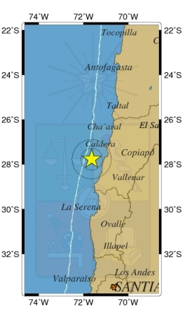 Según la información preliminar del Centro Sismológico de la Universidad de Chile, la magnitud del sismo fue de 4.8 en la escala de Richter, 59 kilómetros al noroeste de Huasco y a una profundidad de 56,6 kilómetros.