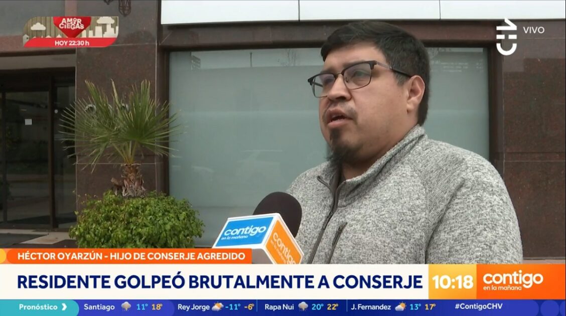 “Un tipo, sin mayor provocación, lo golpea por la espalda. Mi papá cae al suelo en la entrada y lo golpea con pies y puños, dejándolo muy mal“, relató su hijo, Héctor Oyarzún, en conversación con el matinal de CHV.