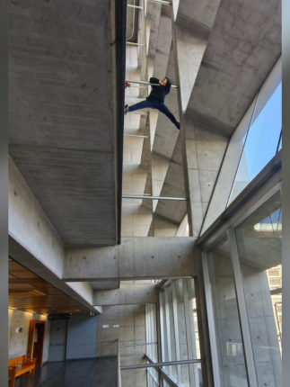 Una vez concluida, el hombre “cruzó la baranda del pasillo del quinto piso y se ubicó en una zona de alto riesgo, próxima a las ventanas, desde donde amenazó con lanzarse al vacío”.