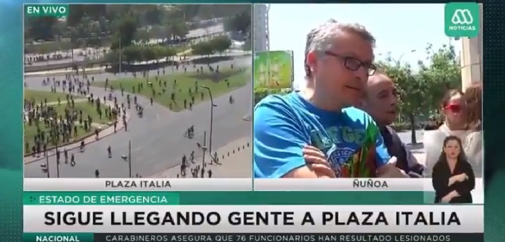 Registran a manifestantes enfrentando a periodista de Canal 13 y lo obligándolo a retirarse en Ñuñoa