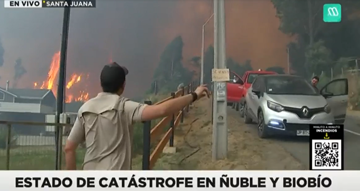 Gonzalo Ramírez vivió minuto de furia en medio de cobertura de incendios en Santa Juana: "¡Salgan!"