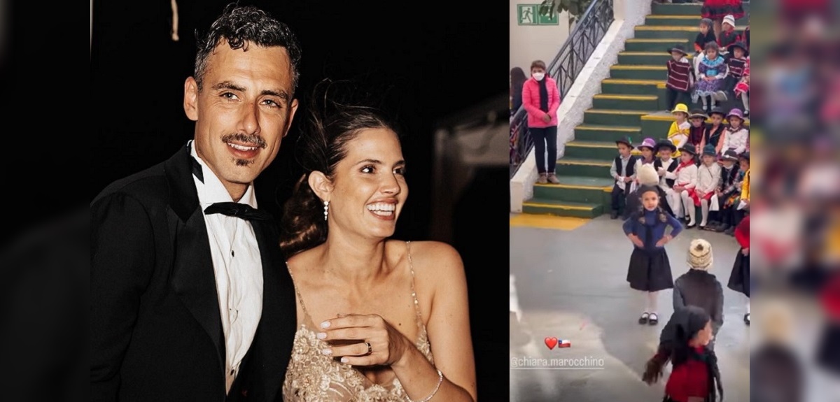 Marcelo Marocchino y Magui Benet 'chochearon' con su hija Chiara en acto escolar: bailó de chilota