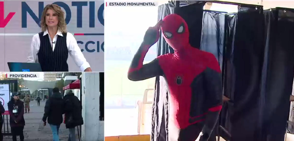 Inesperada pirueta de votante disfrazado de 'Spider-Man' desató risa de Diana Bolocco