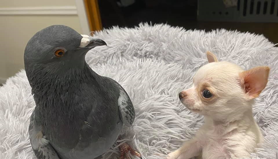 Inseparables: la historia viral de una paloma y un perro que se unieron en una clínica para animales