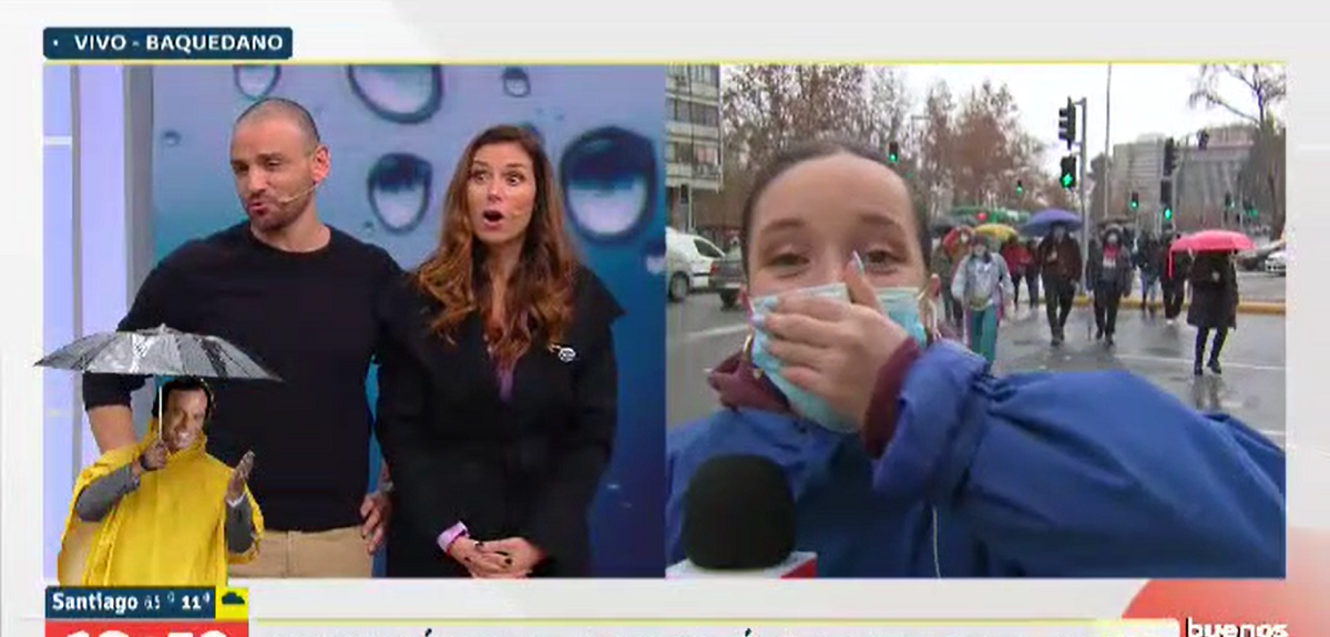 Periodista del Buenos días a todos sufrió cómico chascarro por lluvias en Santiago: "Una filtración"