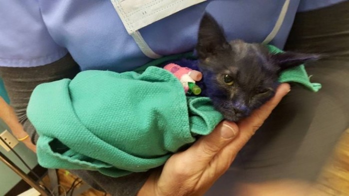 Feroz maltrato: Encuentran gatito agredido y teñido de púrpura tras ser usado como cebo