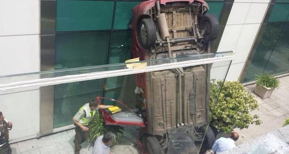 Fuera de control: Automóvil cayó al foso de edificio de Las Condes