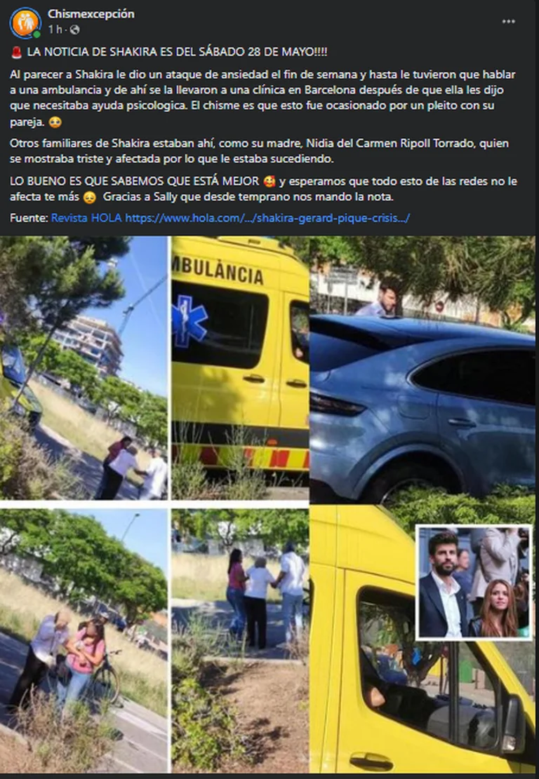 Por su parte, Shakira se encontraba al interior de la ambulancia, mientras que Piqué estaba tratando de consolar a su suegra con un abrazo.