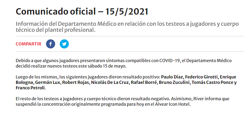Comunicado River Plate | Club Atlético River Plate