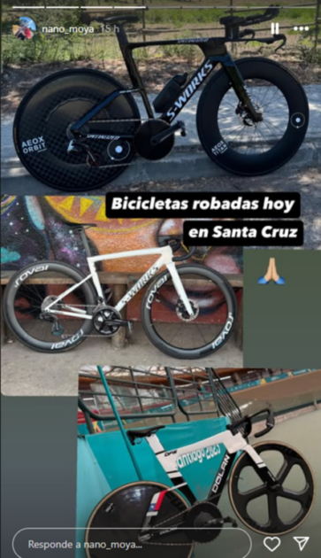 La alerta del robo se dio a conocer a través de las historias de la cuenta de Instagram del deportista y de TeamparaChile.