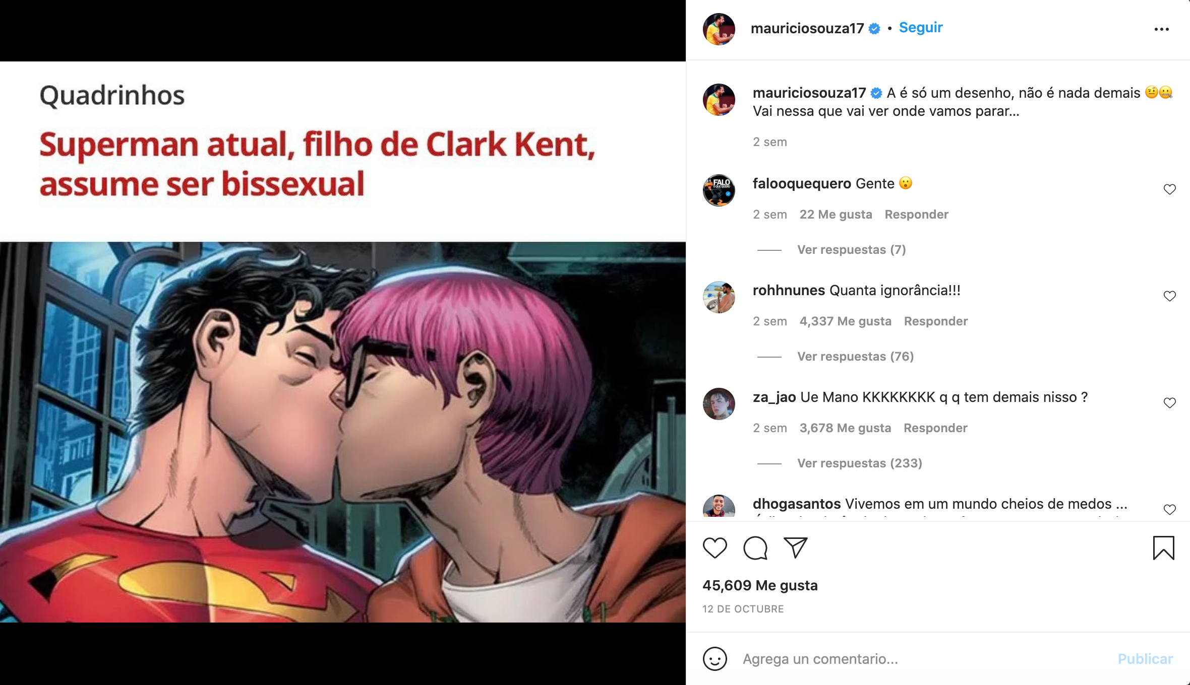 “Ah, es sólo un dibujo, no es gran cosa… Sigamos así a ver dónde terminamos“, escribió el voleibolista, en un mensaje acompañado de una imagen del nuevo Superman besándose con un hombre y que fue respaldado por otros voleibolistas brasileños, como Sidao y Wallace.