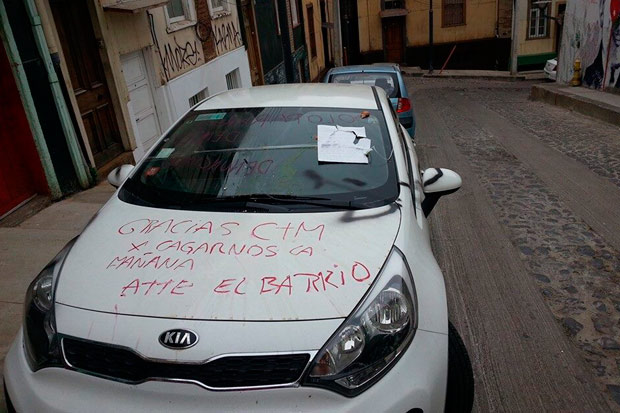 “Gracias ‘ctm’ por cagarnos la mañana. Atte. El Barrio”, le pintaron en todo el capó. Las imágenes pronto llegaron a la oficina de este medio y comenzaron a viralizase.