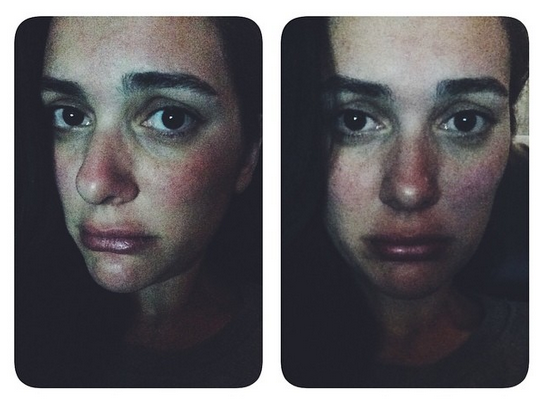 Bergüzar subió una imagen en Instagram en la que reconoció que era alérgica a las frutillas… pero aún así, igual las había comido. El resultado salta a la vista: zarpullido, los labios hinchados y su rostro irreconocible bajo el rojo de la alergia, al mismo tiempo que hacía un pucherito por la situación.