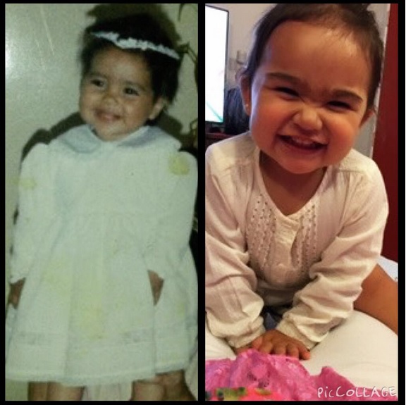En la foto, comparaba una imagen de cuando ella era pequeña con una actual de su pequeña, dejando claro que son idénticas.