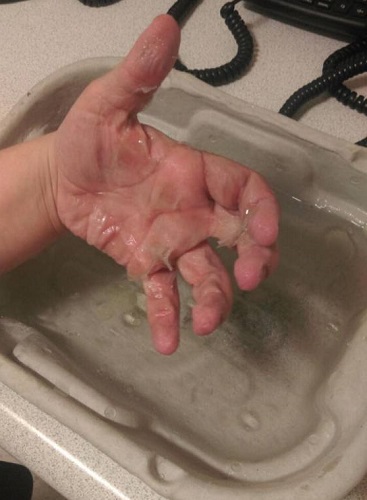 Cruel broma: Así le quedaron las manos a mujer que fue pegada a la puerta de su casa