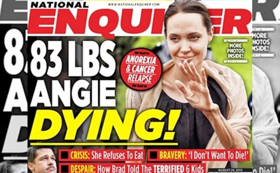 Diversas reacciones despertó una imagen de la actriz Angelina Jolie, en la cual lucía bastante avejentada y delgada. La foto se convirtió en portada del diario sensacionalista estadounidense National Enquirer, el cual especuló en un artículo que la estrella de Hollywood sufría de anorexia y cáncer, y que además había llegado hasta los alarmantes 37 kilos de peso.