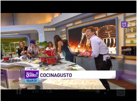 La ex candidata a reina del Festival de Viña interpretaba una canción mientras se desarrollaba el espacio de cocina, donde preparaban una lasaña, cuando tomó la manguera del lavaplatos para usarlo de micrófono.