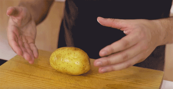 Como demostraron en un video viral, para pelar una papa sólo necesitas cortar una línea central y echarla a hervir. Cuando ya esté en su punto, la sacas y con mucho cuidado de no quemarte, “corres” la piel.