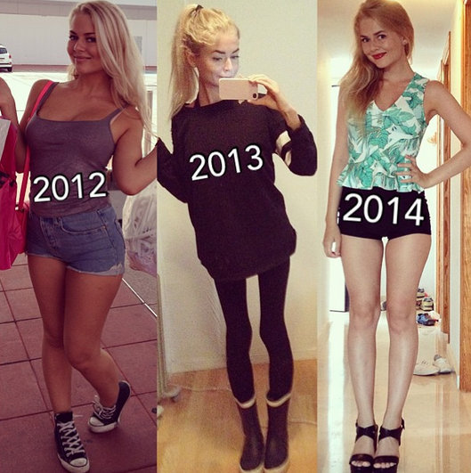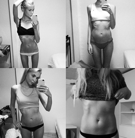 La joven compartió tres imágenes de su proceso: una del 2012, 2013 y una algo recuperada en el 2014, demostrando que los kilos no siempre son buen indicador de sufrir una enfermedad. “¿Qué tienen en común estas fotos? Un desorden alimentario (…) perder o ganar peso es sólo un síntoma. Muchas personas con desórdenes alimentarios tienen un peso normal o sobrepeso y nunca llegan al estado clínico de la anorexia nerviosa”, explica en Instagram.