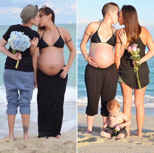 Estas jóvenes subieron a Instagram una tierna foto de su “antes y después”: la primera imagen fue tomada en enero del 2014 y se puede ver a Vanessa Iris Roy esperando a su primer hijo. La segunda, fue tomada exactamente un año después y muestra a Melanie Roy embarazada y su pequeño niño acompañándolas.