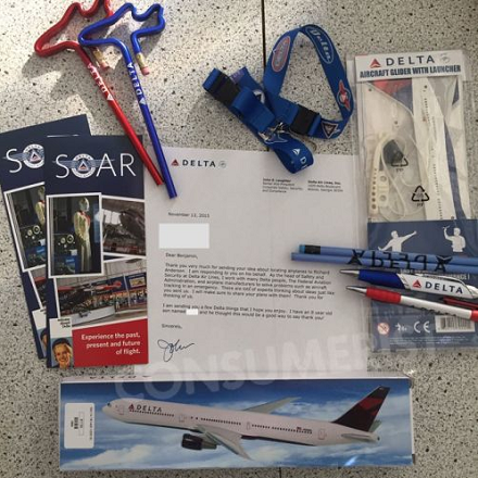 Al recibir la carta, el vicepresidente de Seguridad de Delta, John E. Laughter, no dudó en responderle a Ben e, incluso, le envió regalos de la aerolínea como premio a su esfuerzo y dedicación.