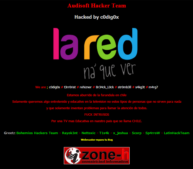 “FUCK INTRUSOS. Por una TV mas Educativa en nuestro país que se llama CHILE”, fue una de las frases que los hackers dejaron.