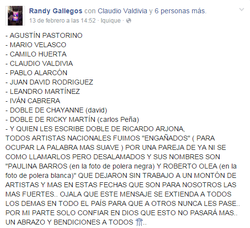 Cuando ya estaban todos organizados y con la ilusión de ser parte de este show, los artistas solicitaron un contrato para oficializar el compromiso, ya que habían cancelado todos los eventos del verano. En ese momento la mujer les dijo que confíaran en su palabra y que el primer show se sería los primeros días del mes.