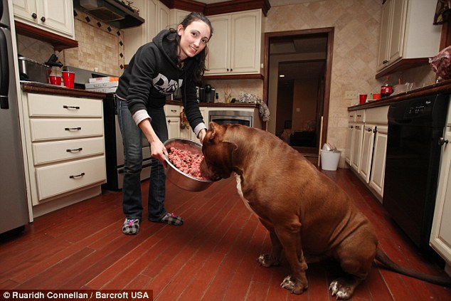 Los perros de esta raza pesan en promedio unos 35 kilos y pueden alcanzar los 60 centímetros, una realidad completamente distinta a la de Hulk, quien está pesando 79 kilos con tan sólo 18 meses de edad.