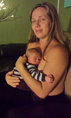 “No había dormido desde que había entrado en trabajo de parto, no sabía dónde poner mis senos, me dolía la vagina por sentarme constantemente a amamantar, estaba perdiendo la cabeza. Katie vino y me alimentó la mañana en que esta foto fue tomada. Ella debió detenerse para darme almuerzo. Luego, una de mis 7 hermanas vino aquella tarde a la cena familiar, Sarah. Sarah tomó esta foto mía”, continuó.