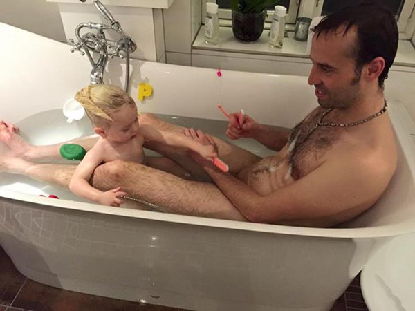 La foto de un papá bañándose en la tina con su hija que enfureció a cibernautas