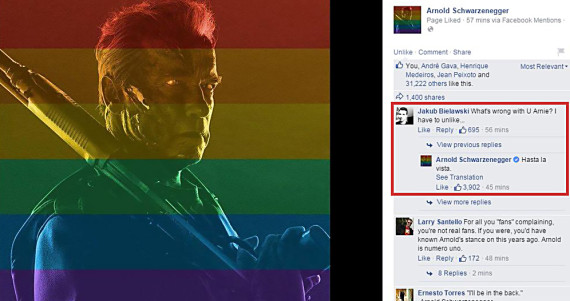 Producto del cambio de su foto de perfil en Facebook, por una con un filtro multicolor, el ex político ha recibido varios mensajes negativos, sin embargo, hubo uno que dio la vuelta al mundo gracias a la perfecta respuesta de Arnold.