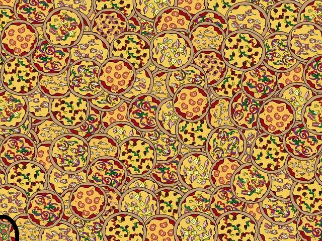Así que prepara tu visión de halcón, y si puedes consigue ayuda de alguien con vista de lince, para encontrar la bendita pizza de pepperoni y pimentón verde.