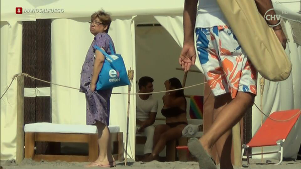 La primera captura corresponde a uno los capítulos grabados en la playa. Al fondo se ve la carpa donde los participantes son puestos a prueba en una relajante sesión de masajes.