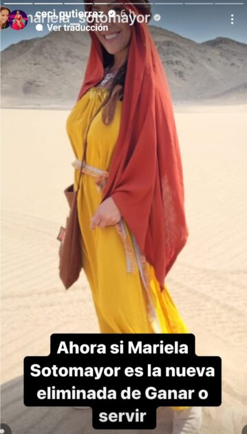 “Ahora sí, Mariela Sotomayor es la nueva eliminada de Ganar o Servir”, escribió junto a una imagen de la participante.