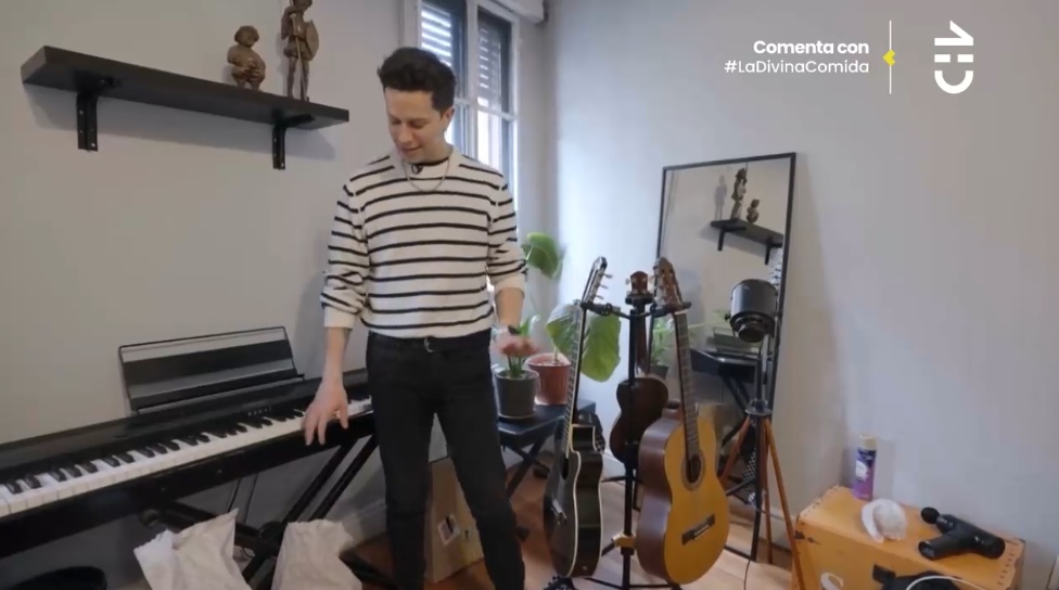 Finalmente, enseñó el rincón musical, donde tenía varios instrumentos, como un teclado y un par de guitarras.