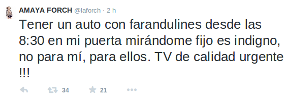 Apenas salió de su casa, Forch comentó sentirse muy intimidada por el equipo, pues estuvieron más de tres horas mirando hacia el interior de su propiedad, y que por tal motivo no iba a conversar con la periodista, levantándole la voz cuando esta intentó preguntarle por las declaraciones de Amaro.