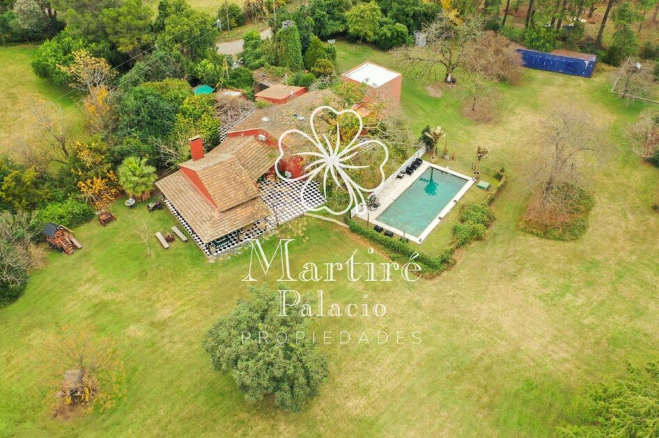 La inmobiliaria la describía como una “imperdible casa en venta”, ubicada en un terreno de 8.260 m², con 265 m² construidos, ambientada en estilo rústico y campestre, con galería en L, pileta con solárium, sala de cine y hasta tres containers con distintas funciones.