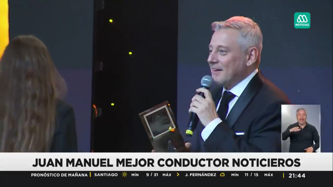 “Nuestro querido Juan Manuel Astorga se llevó el galardón al mejor rostro informativo, Jaime Leyton recibió el premio al meteorólogo del año”, dijo.