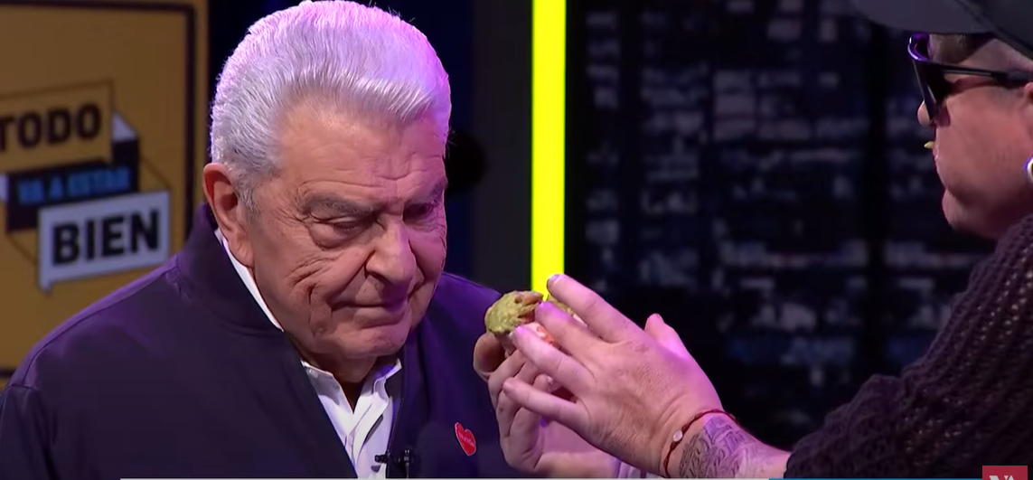 Tras este saludo, Junior Playboy pasó a “leer la mordida de completo” a Don Francisco. Para ello, miró al animador y luego le dio una mordida a la comida.