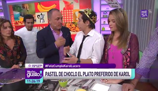 Pero esto no fue todo, pues al estudio llegó su polola Catalina Vallejos, quien junto a los compañeros de Karol Lucero le cantó el cumpleaños feliz, pero en inglés.