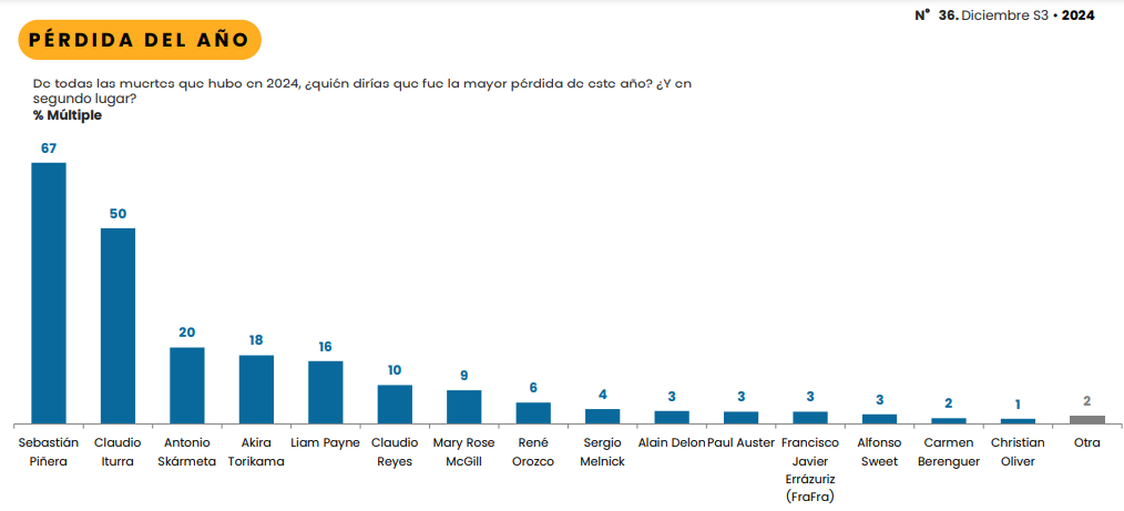 Así, frente a la consulta “De todas las muertes que hubo en 2024, ¿quién dirías que fue la mayor pérdida de este año? ¿Y en segundo lugar?”, los encuestados resolvieron por amplia mayoría el primer puesto.