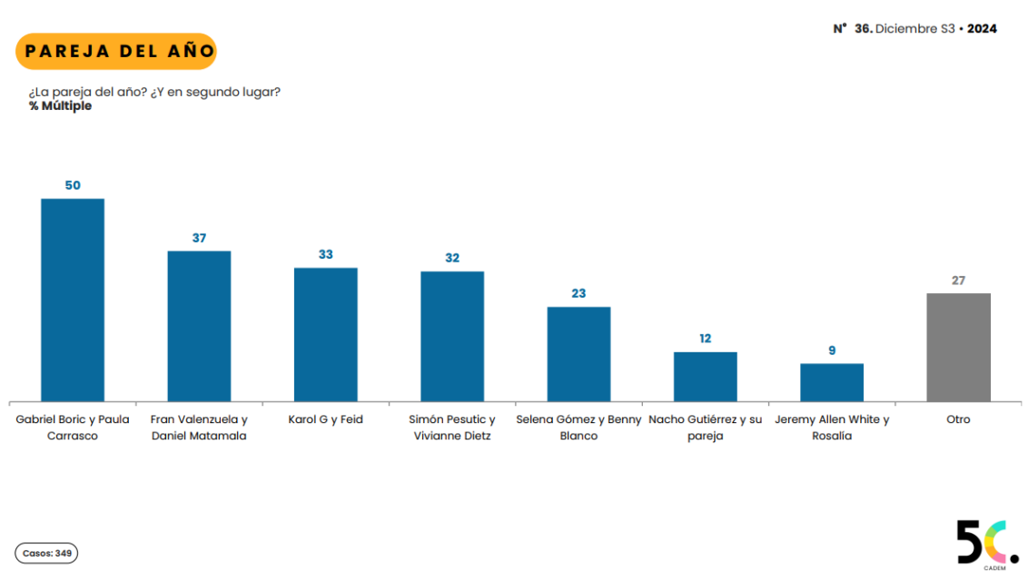 La misma encuesta consultó sobre las parejas del año y, al igual que en la medición anterior, se podía elegir más de una opción.