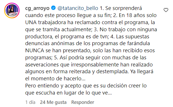 La respuesta de Carmen Gloria Arroyo