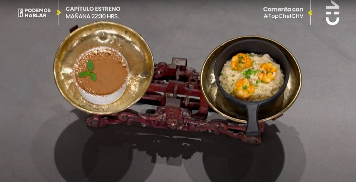 El concursante del programa de CHV presentó dos platos sobre una balanza, para ser evaluado por el jurado.