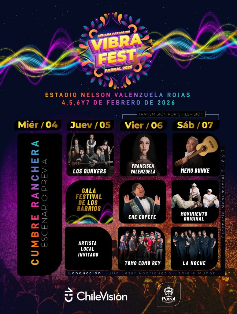 El Festival Vibra Fest Parral 2026 llegará a la televisión abierta a través de Chilevisión el próximo 6 y 7 de febrero.