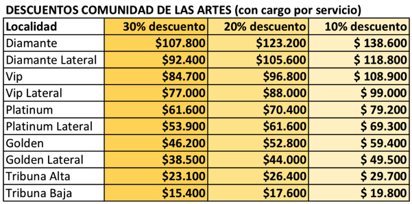 *Descuentos son aplicables con los códigos disponibles en la web de la Comunidad de las Artes.