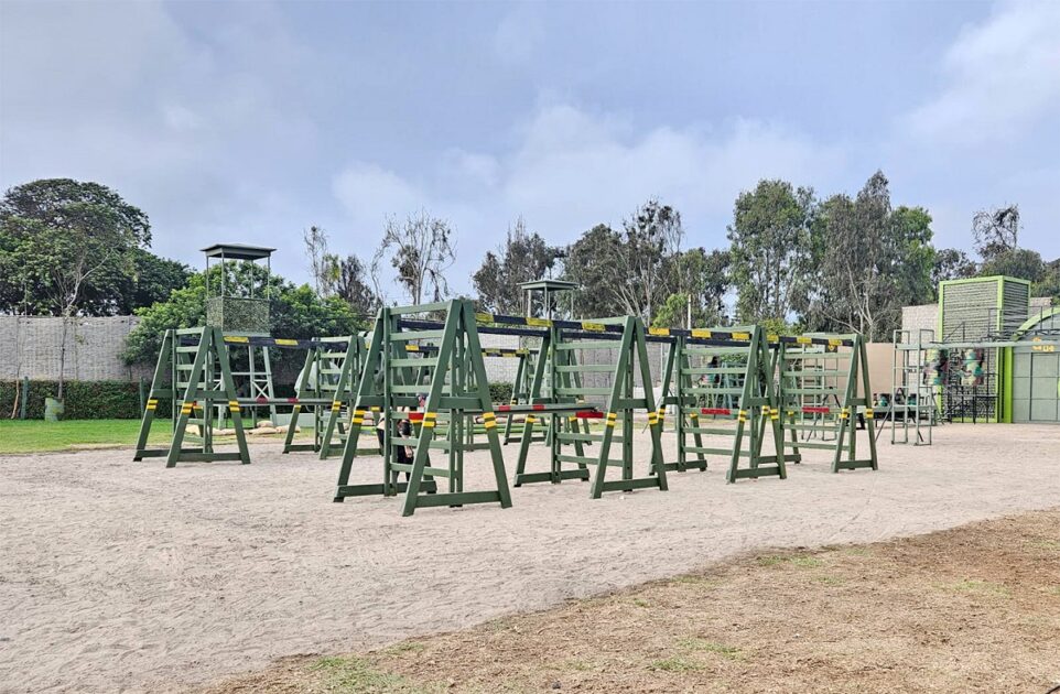 Asimismo, para reforzar la ambientación militar, habrá un helicóptero permanentemente estacionado y existirán estructuras metálicas que evoquen una complejidad logística de este tipo de operaciones, así como torres de vigilancia con sacos de arena.