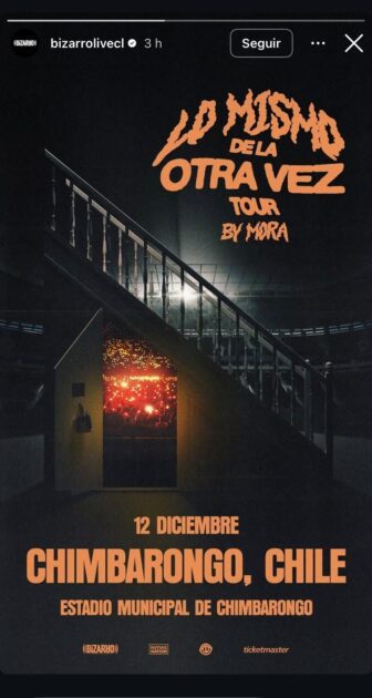 Durante hoy martes 27, Mora anunció las fechas de los conciertos que dará por su tour Lo Mismo de la Otra Vez , y Chile no está ausente: el cantante se presentará en Chimbarongo , región de O’Higgins .