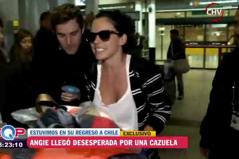 Con generoso escote y marcado bronceado Angie Alvarado volvió a Chile