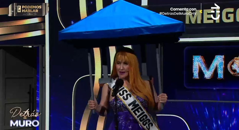 La noche del pasado jueves, Belén Mora provocó carcajadas con una hilarante parodia del Miss Universo , en el estelar Detrás del Muro de Chilevisión.